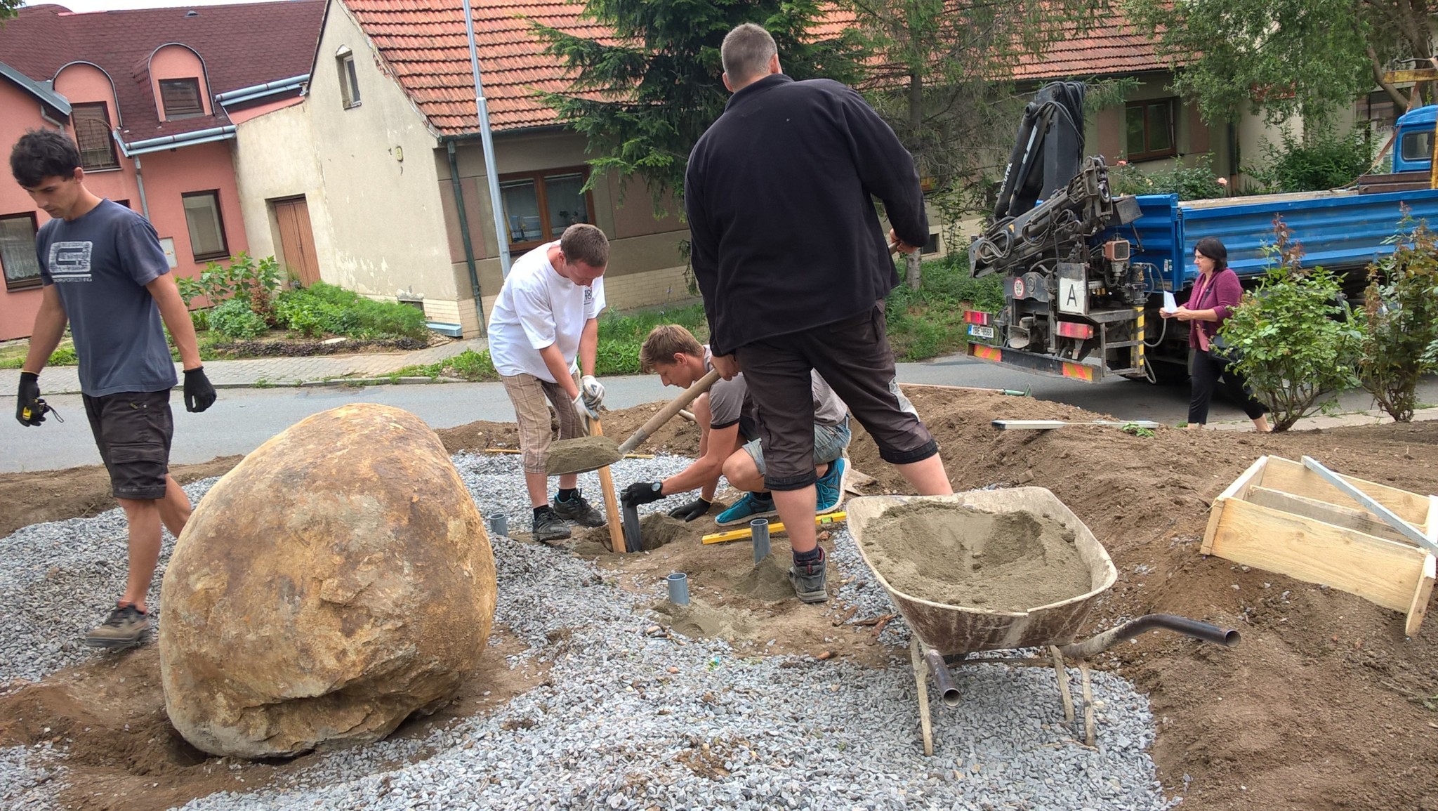 Profesionální firmu, která provádí terénní úpravy a osazení kamene, povrchy atd., dnes vystřídali nadšení amatérští zahradníci z Čistých Šlapanic, aby přidali ruku k dílu. Pro ukázku probíhající realizace přinášíme několik fotografiií, na dokončení musíme ještě chvíli počkat.