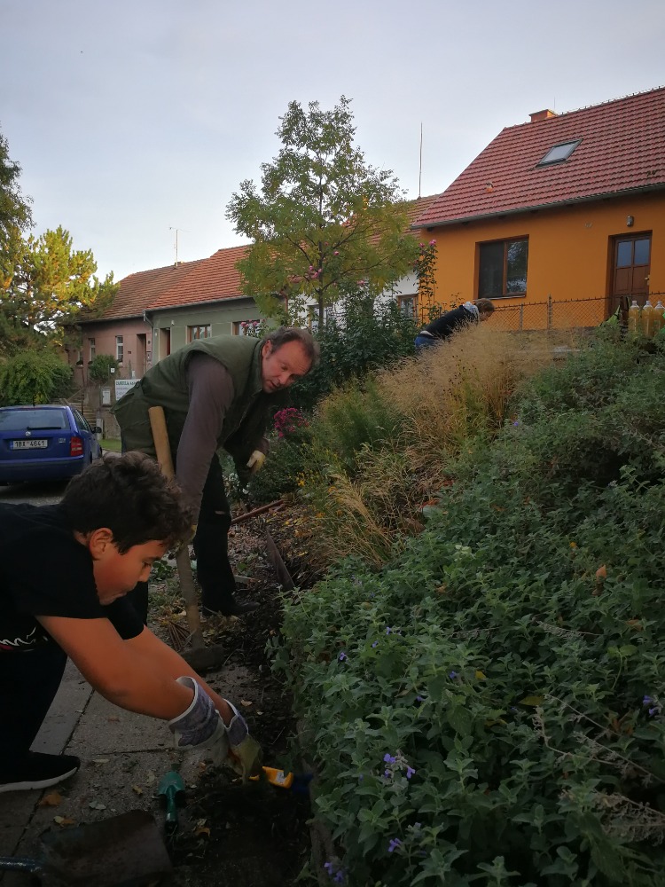 Parčík dostal při této příležitosti nový obrubník, aby nevypadávala zemina na chodník a také podzimní sestřih.